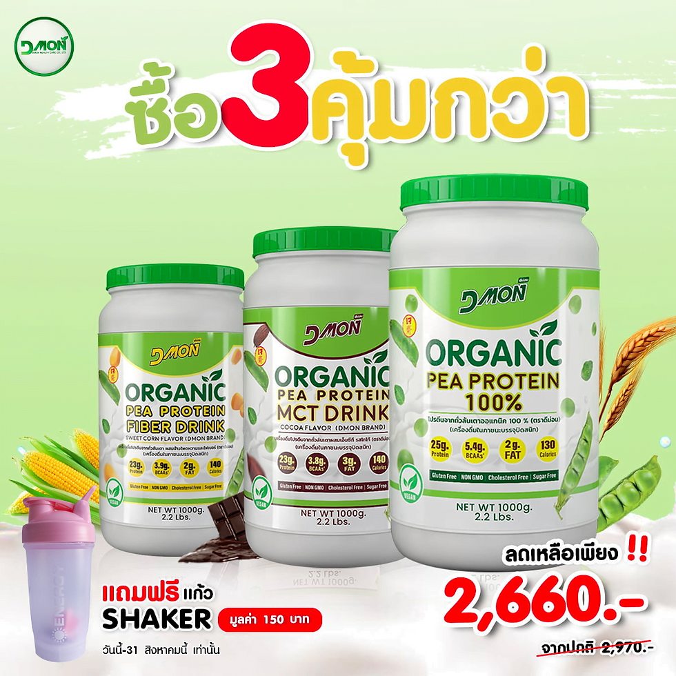 “โปรโมชั่น ซื้อ 3 คุ้มกว่า” ฟรีแก้วเช็ค เครื่องดื่มโปรตีนจากถั่วลันเตา 3 รสชาติ